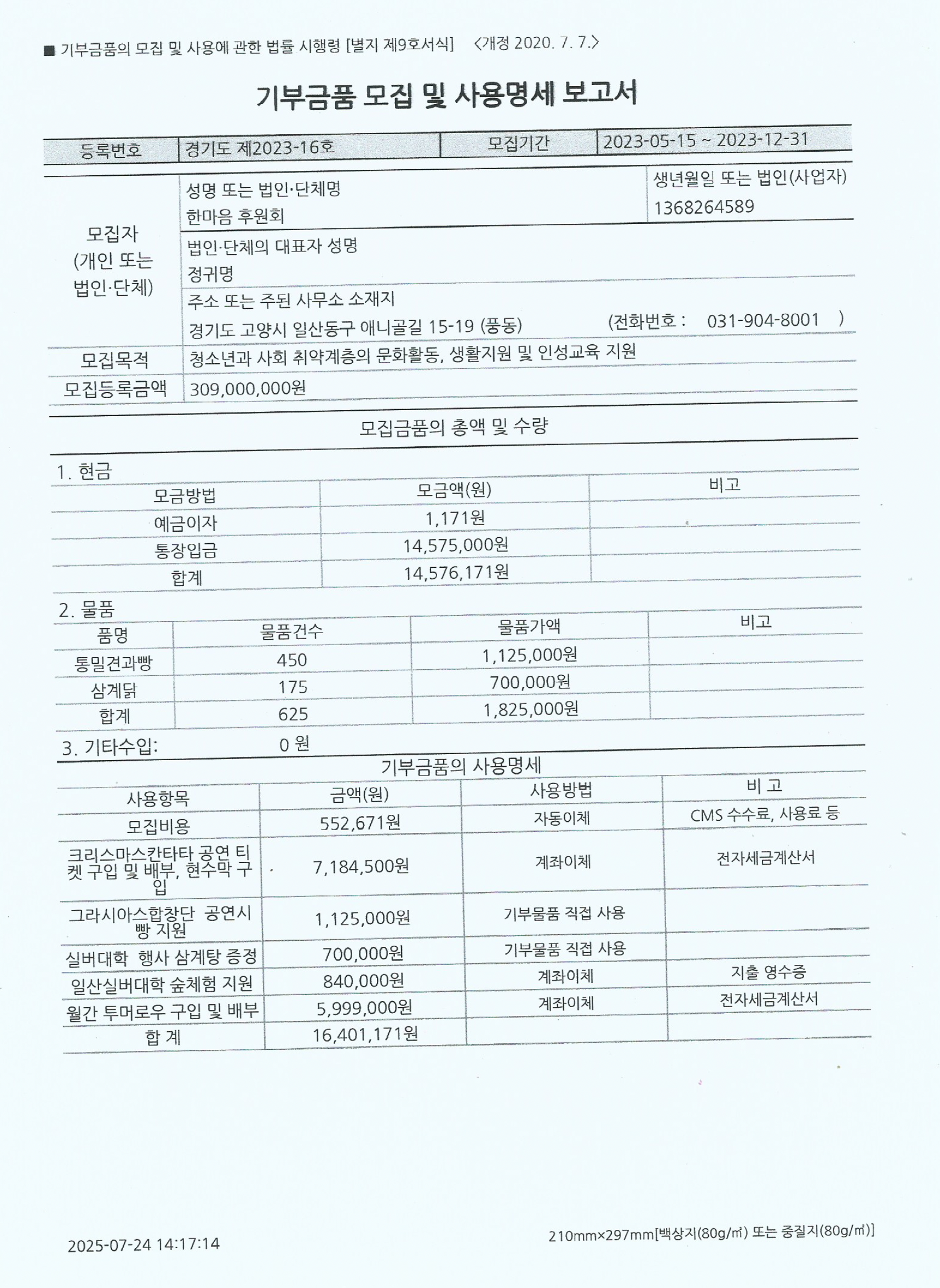 2023 기부금품 모집 및 사용명세 보고서