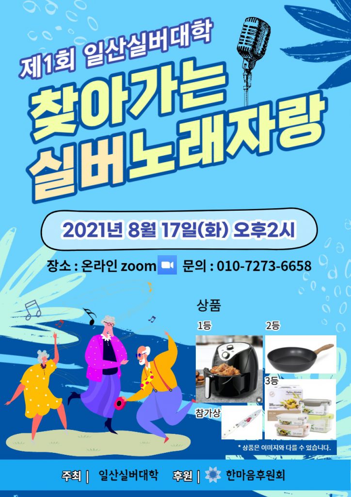 실버 도우미 활동/ 기부금 후원 포함 코로나 백신이 나온 이후, 사람들의 기대를 외면하듯 변이 바이러스들이 속출하고 있다. 전 세계적으로 격리가 풀리지 않은 채, 코로나는 여전히 사람들의 발걸음을 묶고 있다. 이러한 가운데 일산실버대학은 온라인 시대의 강점을 활용해 오히려 활동의 지경을 넓혀가고 있다. 실버캠프에 앞서 실버 장기자랑을 진행함으로써 실버분들의 마음을 즐겁게 함과 더불어 연결하는 시간을 가졌다. 제 […]